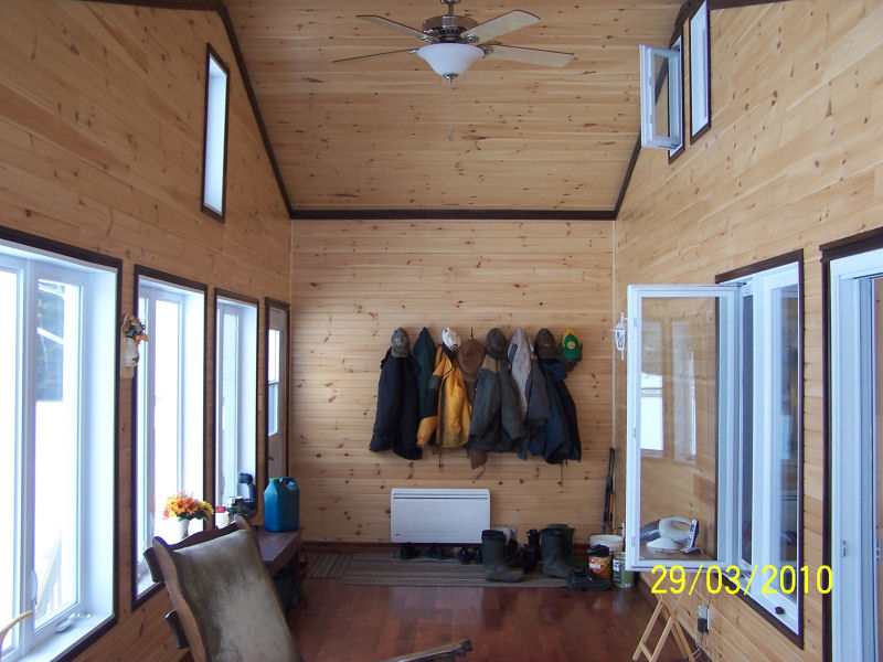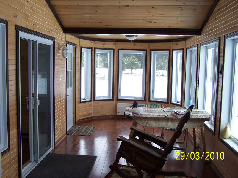 planchers flottants résistants de12mm., les plafonds en gyprox (parco-plâtre), les murs en pin blanc naturel, les comptoirs de cuisine en